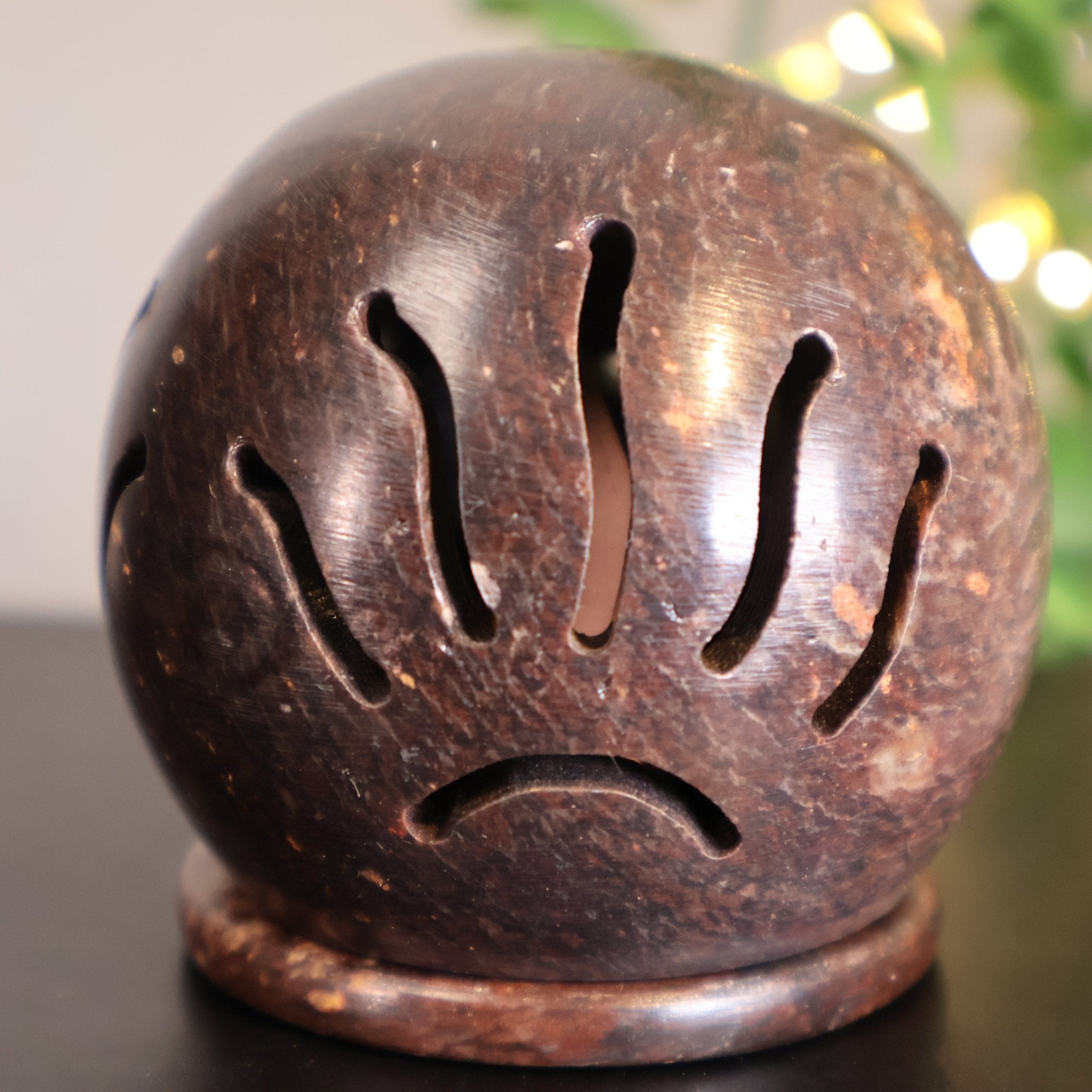 This 2.5" round sphere with bottom tray is made out of soapstone and is hand sculpted with fun cutout designs to allow the incense to flow through your space. Heavier than wood, soapstone makes for a sturdy burning surface, making this a great choice for any alters, intention sessions or just a cleansing of your space.