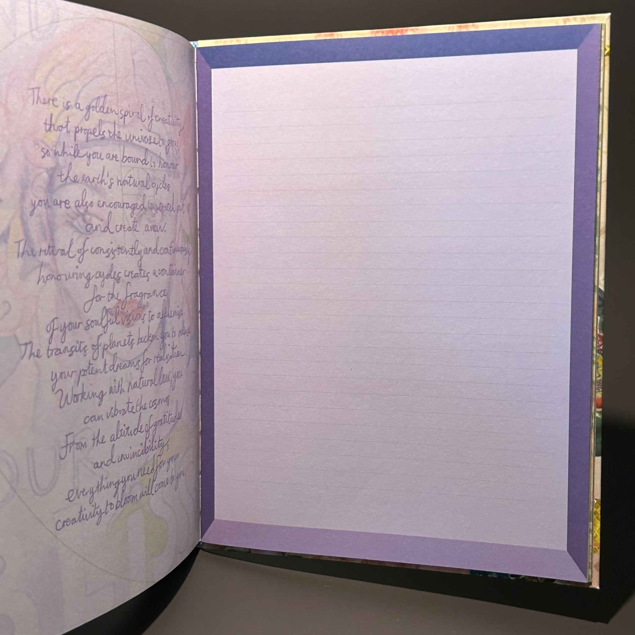 Use the letter page and envelope contained within to write yourself a love letter from your heart to your soul. Your dharma is a promise to fulfil. This short and delicious life is yours, so don't waste any time doubting your worth or calling. You are here for divine creative purpose, and this journal will help you to celebrate your own creative rhythm.
