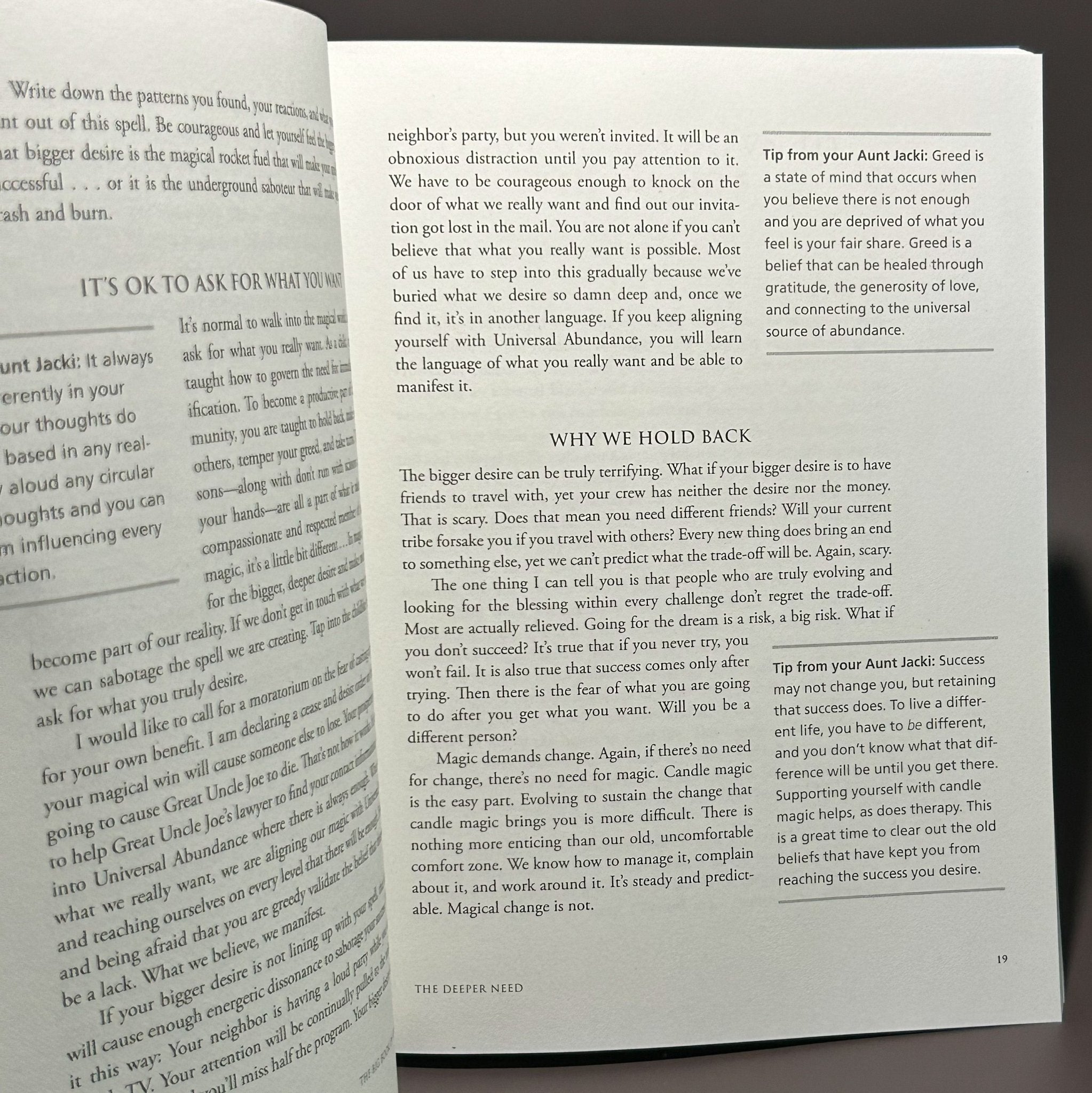 Her book explains the nature of magic spells and provides examples for a wide variety of purposes including love, money, healing, and protection, liberally punctuated with tips from "Aunt Jacki," deriving from her many years of experience. The Big Book of Candle Magic shows: How to create your own candles The basics of crafting your own spells How to use basic supplies for everyday magic