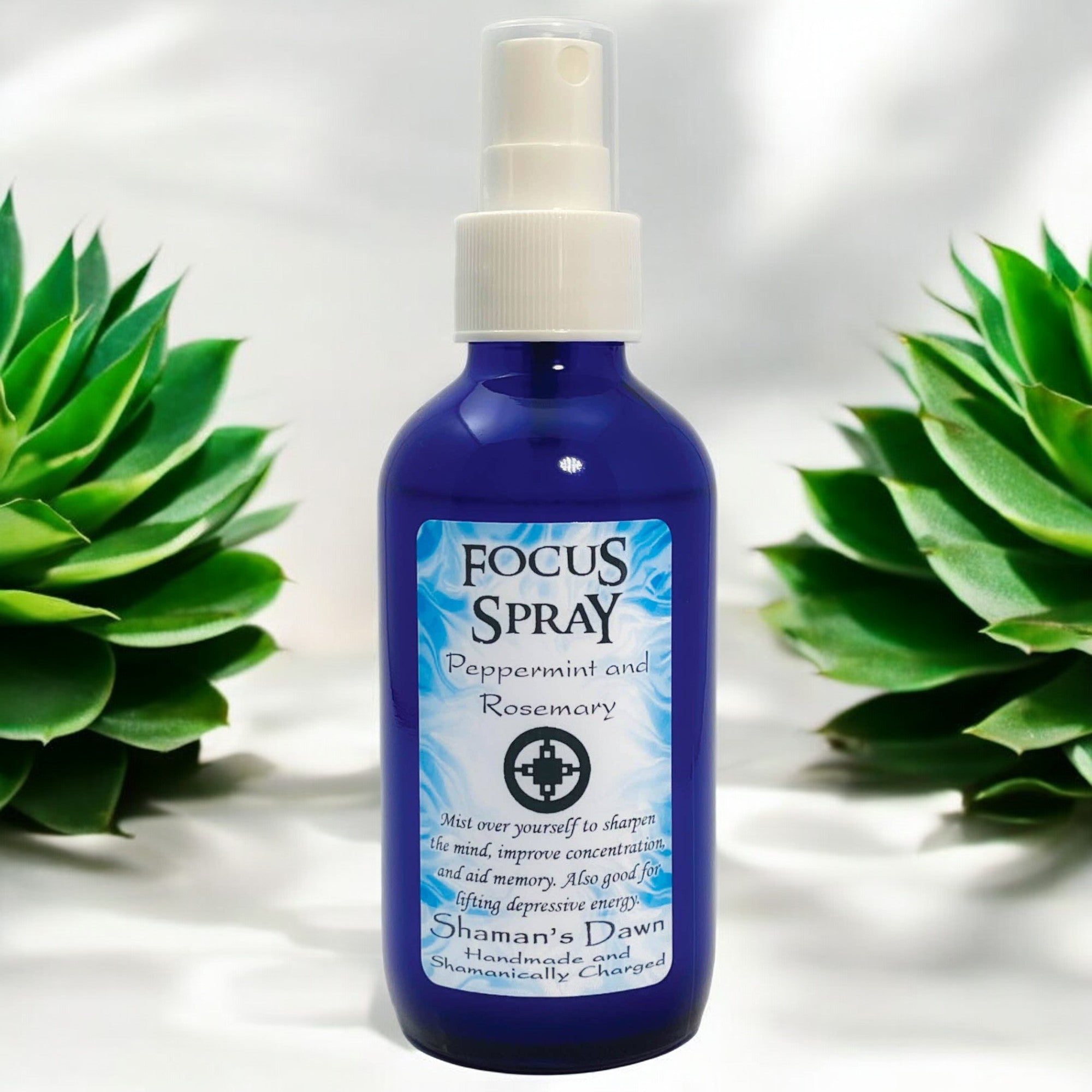 Enhance your mental focus and sharpen your mind with Shaman's Dawn Focus Spray, a refreshing minty blend designed to improve concentration and memory. This all-natural spray, made with Peppermint and Rosemary, is perfect for clearing mental clutter and lifting the energy of depression.