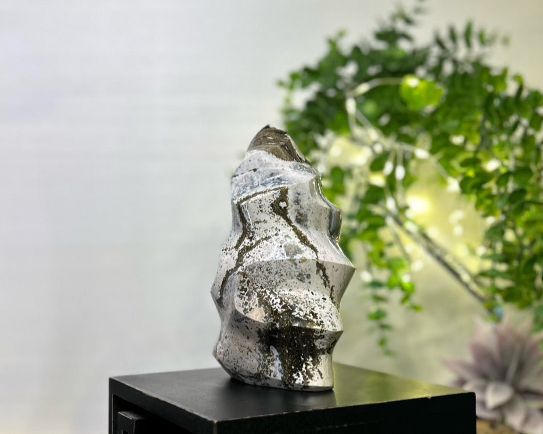 Welcome to your peaceful escape! This dreamy Ocean Jasper Flame offers comforting energy to help you accept the past, and find a sense of harmony and optimism moving forward. Its powerful healing properties assist digestive issues, heart palpitations and hormonal imbalances, making it the perfect pal to bring you along on your spiritual journey!
