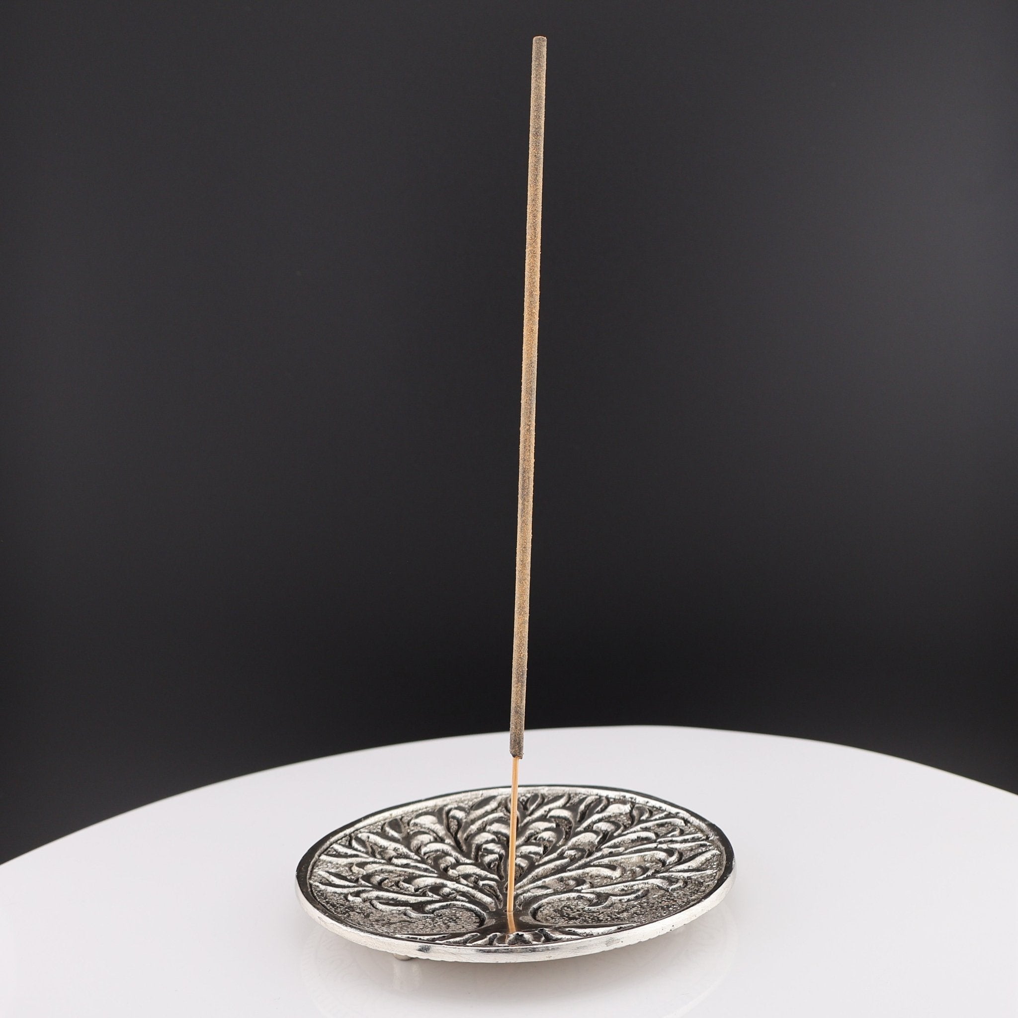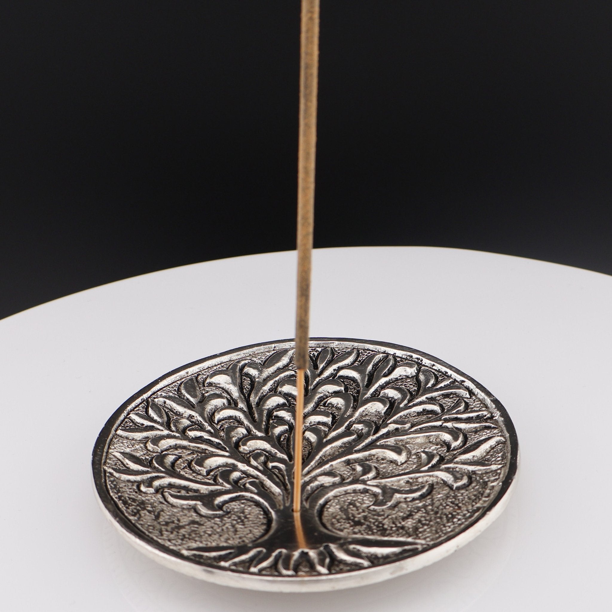 This 4" round silver tray features a fancy Tree of Life design. This round tray makes for a sturdy burning surface, making this a great choice for any alters, intention sessions or just a cleansing of your space.