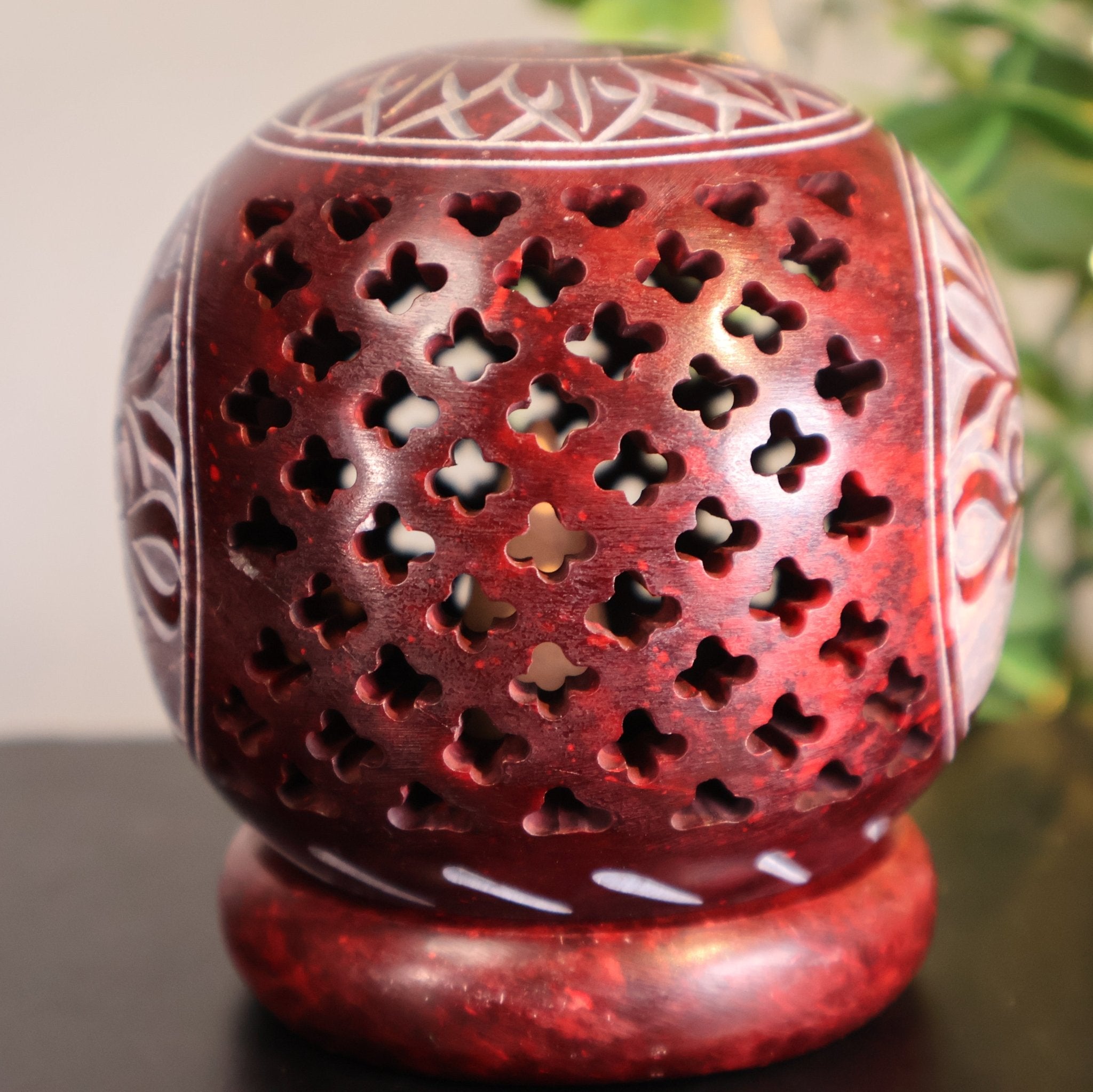 This 3" round sphere with bottom tray is made out of soapstone and is hand sculpted with fun cutout designs to allow the incense to flow through your space. Heavier than wood, soapstone makes for a sturdy burning surface, making this a great choice for any alters, intention sessions or just a cleansing of your space.