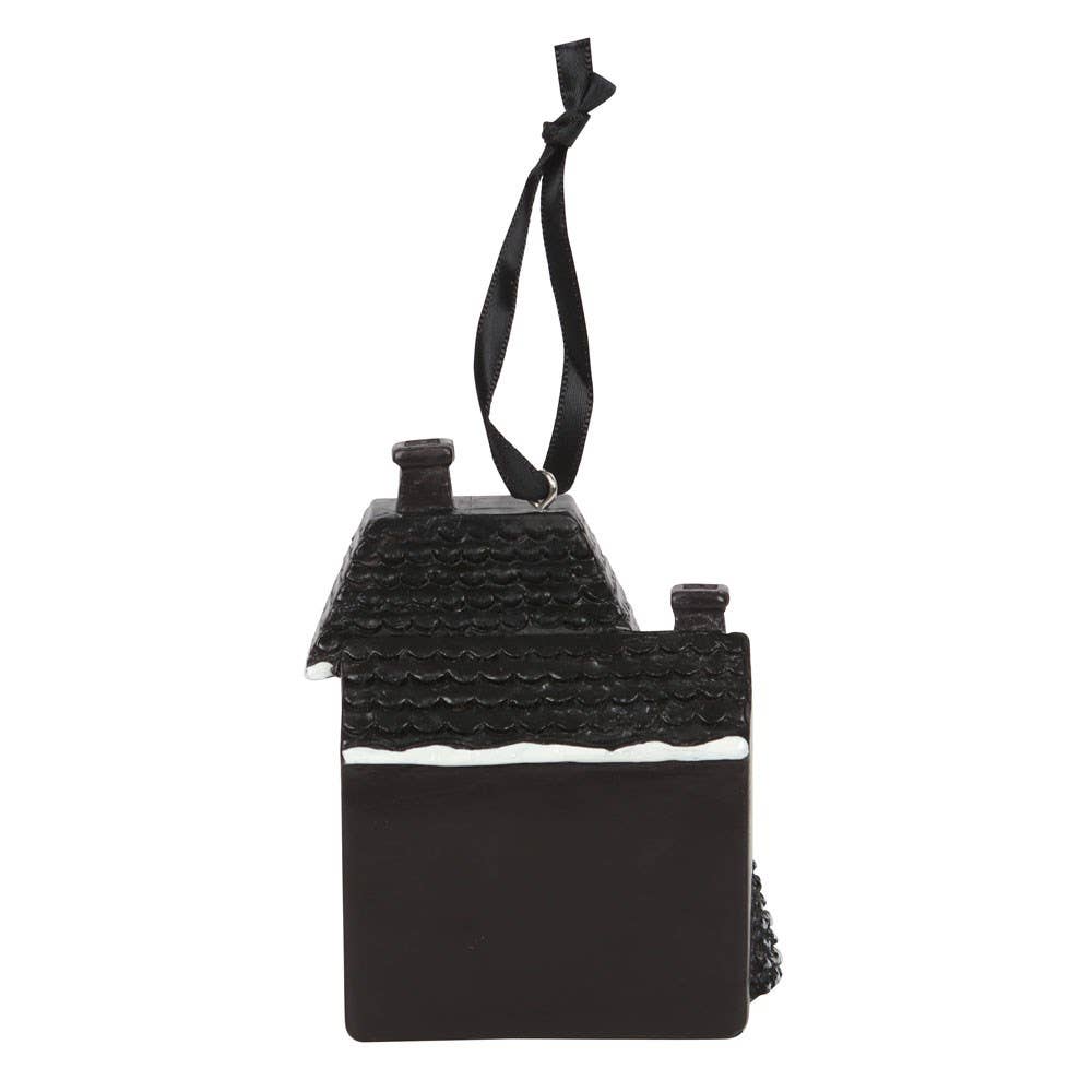Gothic Elegance: This black haunted house ornament is a captivating deviation from the conventional Christmas decor. It offers an alternative aesthetic that's perfect for those who find delight in the mysterious and the unconventional.