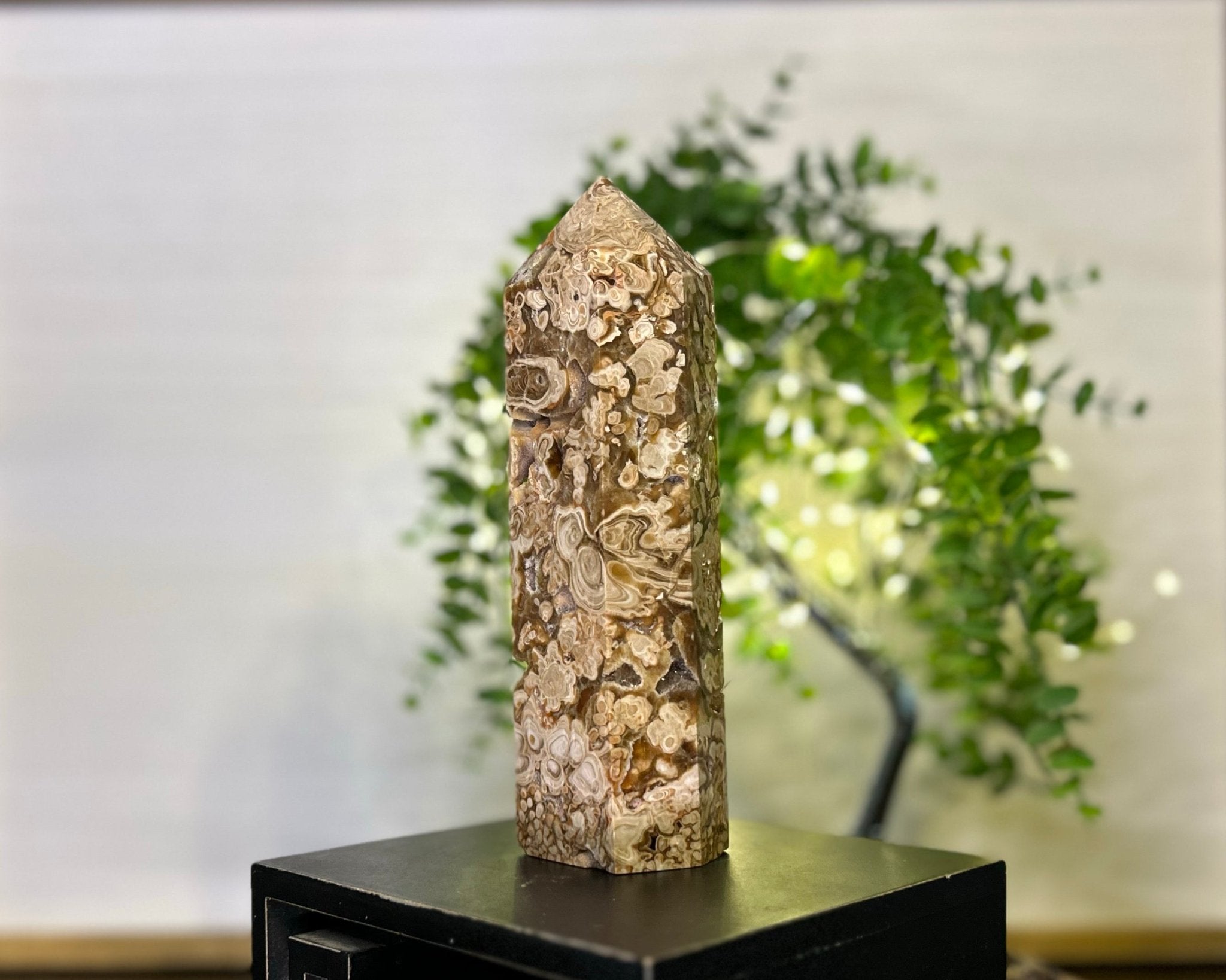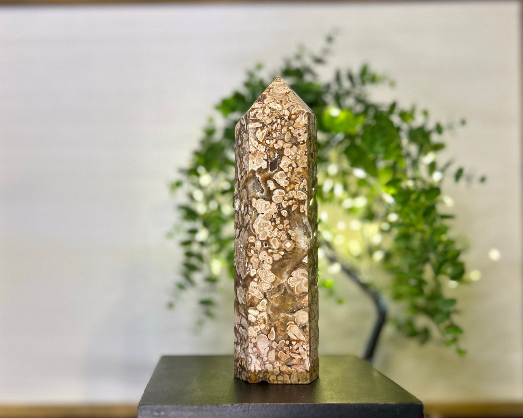 Let this intricate Amber/Chocolate Calcite Tower stabilize and ground your energy while bringing balance and expanded awareness. Its stabilizing energy helps you find emotional stability so you can channel energy constructively and confidently! A must-have for any mindful journey!