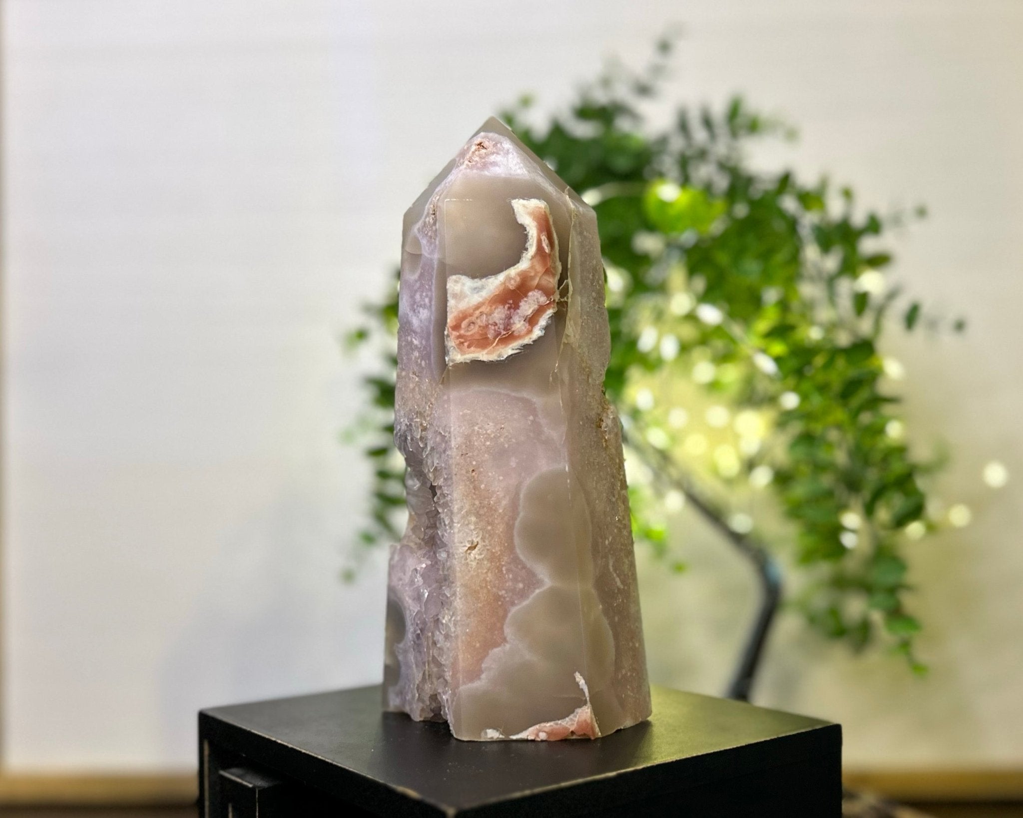 Immerse yourself in the soothing energies of Pink Amethyst and Flower Agate as you explore the metaphysical properties of this exquisite tower. Let its presence inspire feelings of love, peace, and natural beauty, enhancing the ambiance of your surroundings. Elevate your crystal collection with this one-of-a-kind tower that effortlessly merges aesthetics and metaphysical potency.